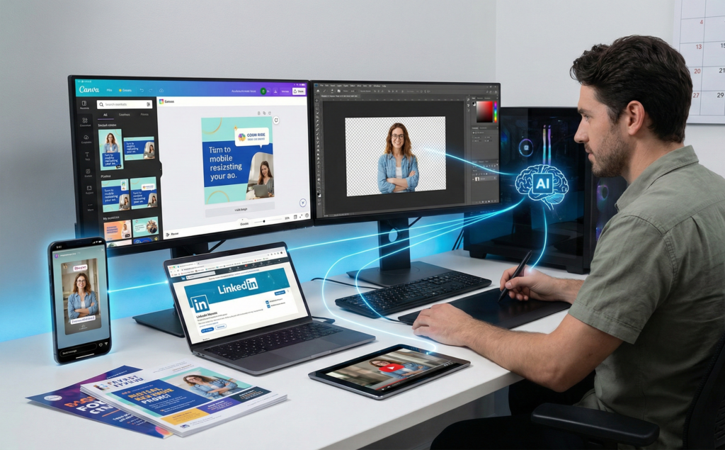AI-Assisted Creative Production Automation (Canva + Adobe + AI)